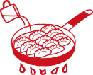 ぎょうざの耳の部分まで蒸し上がったら蓋を取ります。水分を飛ばしながら、動かさずに焼き色を付け、パリッと焼き上げます。