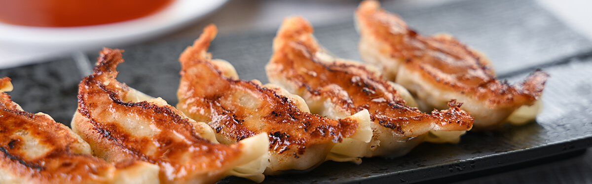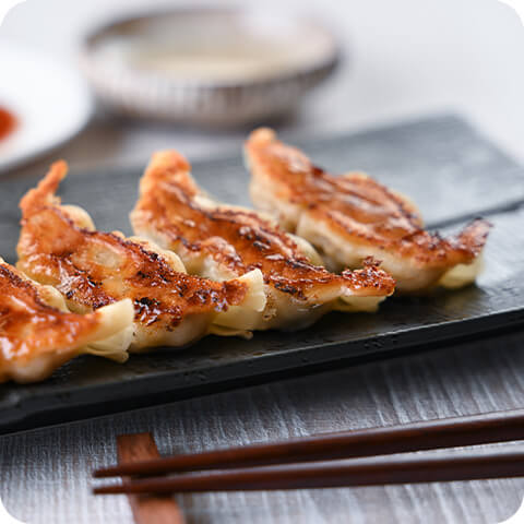 綾の天然水で仕込んだ黒酢で作りました。まろやかな旨味が綾餃子の味を引き立てます。