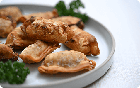 160~170℃に熱した油に餃子を入れ、中火できつね色になるまで揚げます。(約5分程度)