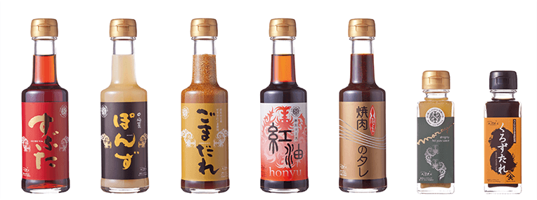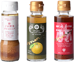お酢をベースにした各種ソース(写真は国内向け商品)