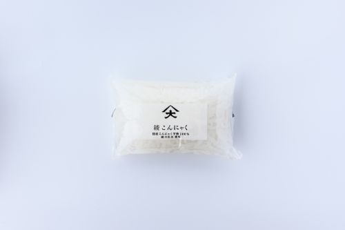 通常の糸こんにゃくと比べ、平たくきしめん状に押し出して成型。湯槽を流しながら成型するため、灰汁の香りの少ないこんにゃくに。サラダ、炒め物、味噌汁、煮物、和え物、麺の代わり などに。