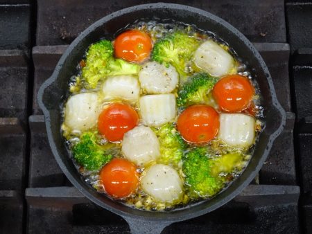 - 小さめのフライパンに《A》を入れ、弱火にかける。(アヒージョ皿・鉄製皿・ココットがおすすめ。)