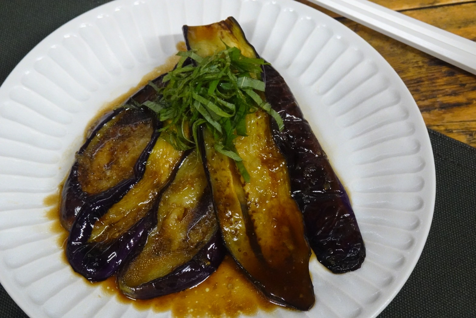 材料は4つだけ。お箸がとまらない簡単副菜レシピ。油を吸ったとろとろの焼きなすがマーシーのタレでさっぱりピリ辛に。ご飯にも良く合います。