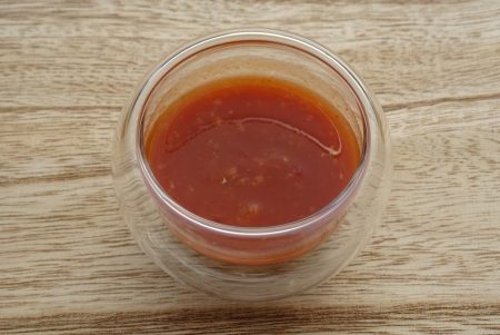 - レンジで30秒ほど熱してとろみが出たら完成。※レンジ以外だと、フライパンで材料を軽く熱する。又は沸騰したお湯に器ごと入れ、熱を加える。