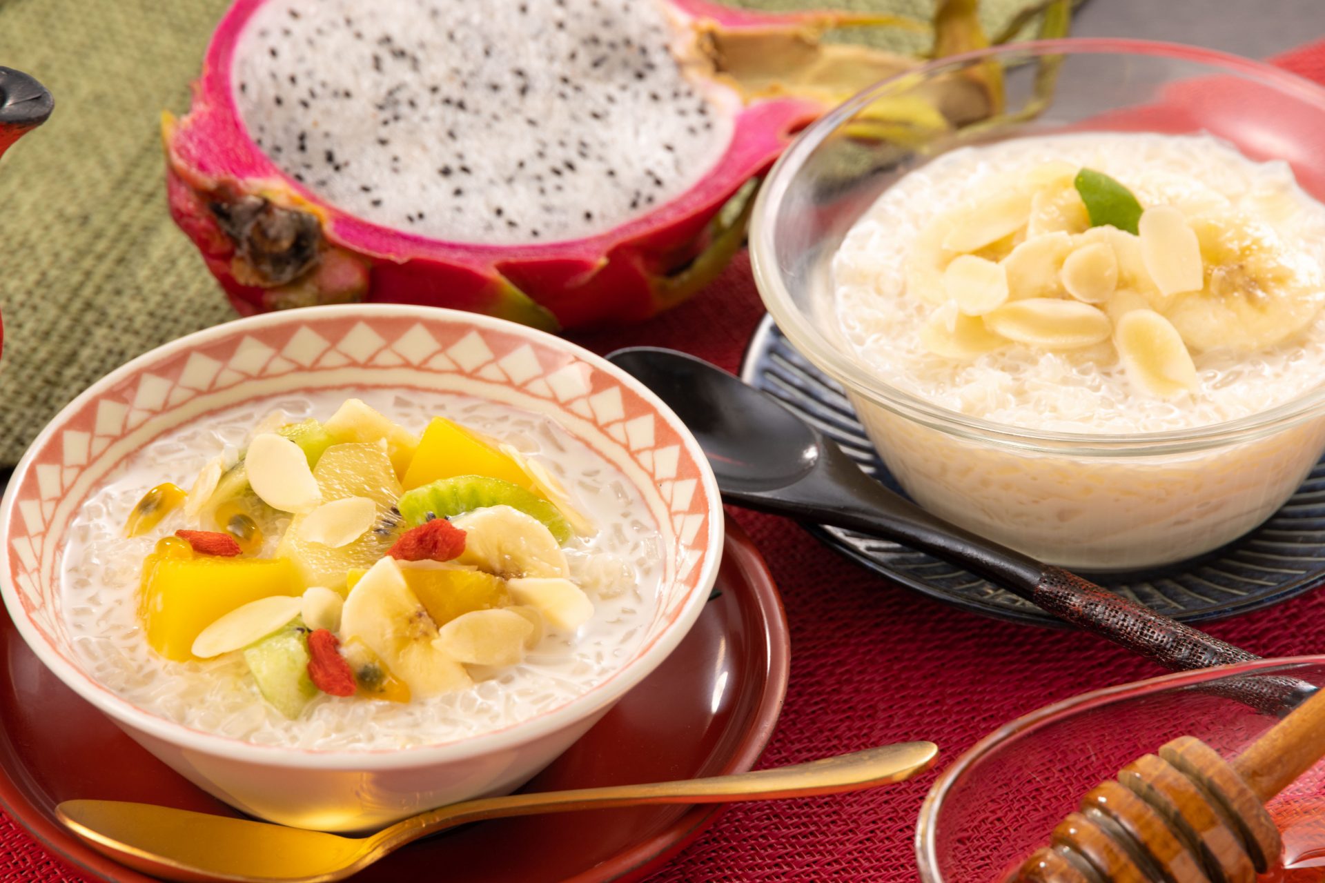 - 細かくカットした芋糸こんにゃくとココナッツミルクを合わせて、冷蔵庫で冷やしておく。