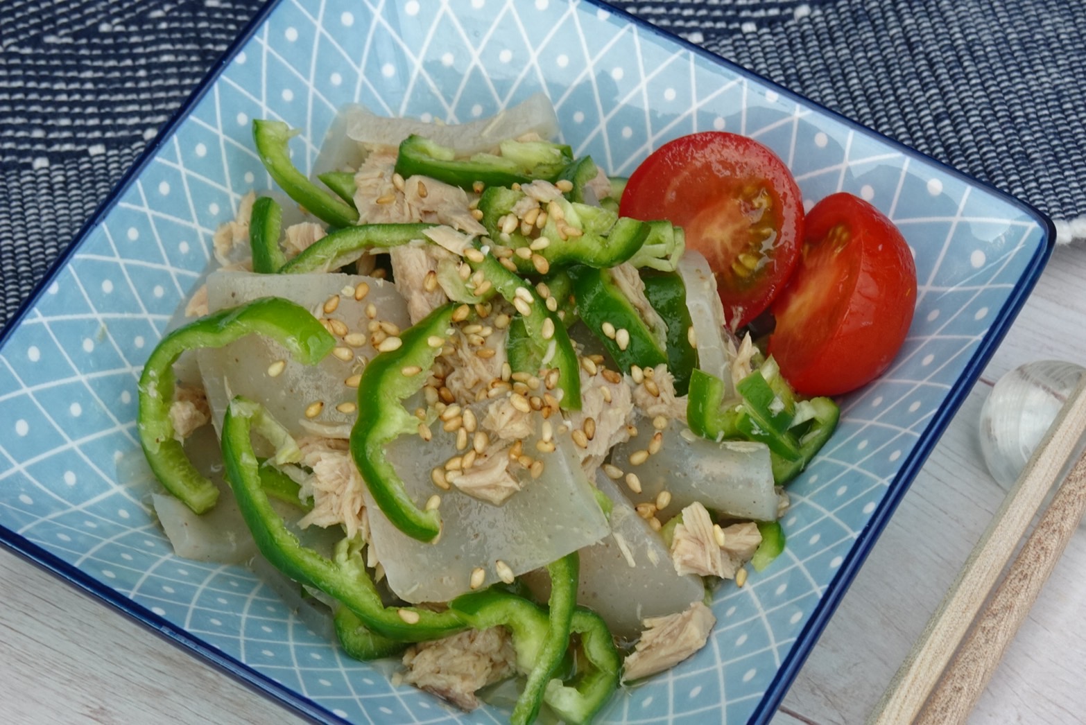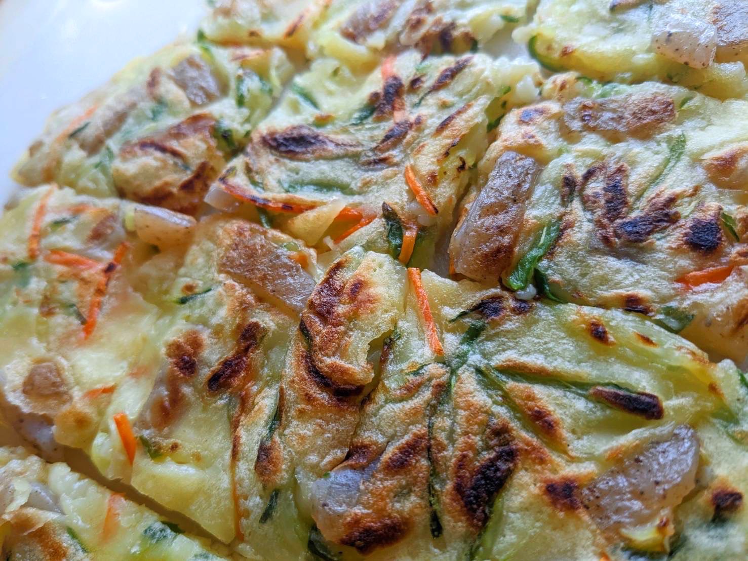 こんにゃくチヂミ ~ピリ辛黒酢タレ~