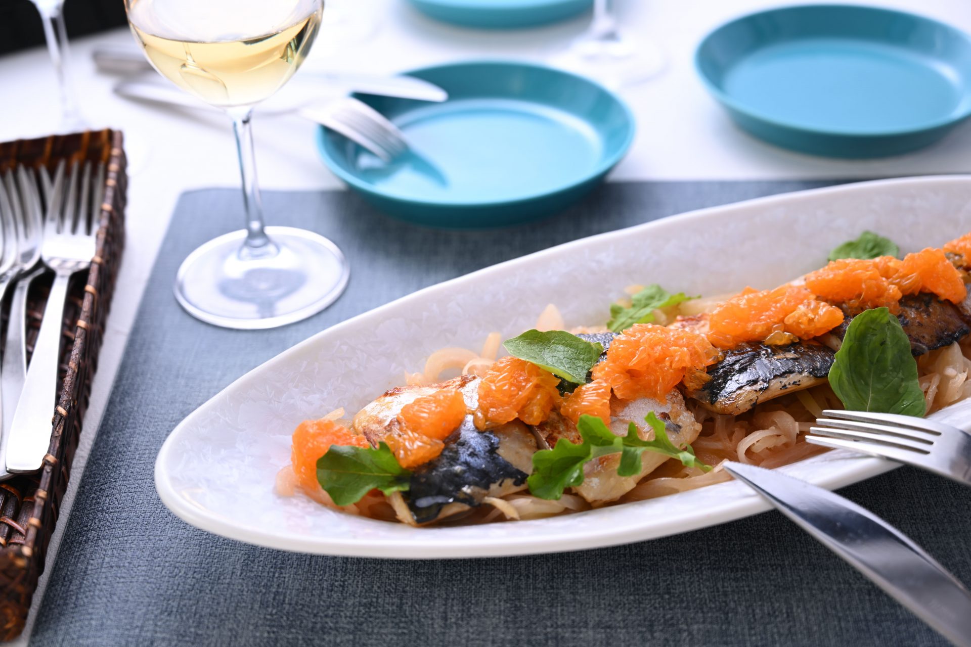 焼きナスとマスカットのお豆腐マヨネーズ和え